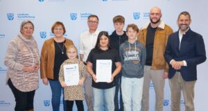 Für die Mittelschule Mömbris nahmen Schulleiterin Sabrina Jüstel, Lehrkraft Jan Sommer sowie drei engagierte Neuntklässlerinnen und Neuntklässler die Ehrung persönlich entgegen. Gemeinsam hatte die Schule während des Aktionszeitraums zahlreiche Kilometer auf dem Fahrrad gesammelt und damit gezeigt, wie wirksam Umweltbewusstsein und Teamgeist verbunden werden können.