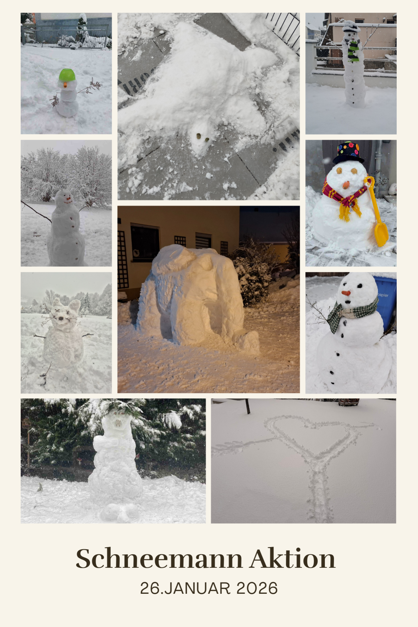 Die Rückmeldung war überwältigend: Schon kurz nach dem Aufruf erreichten uns sehr viele Fotos mit liebevoll gebauten, lustigen und kreativen Schneemännern.